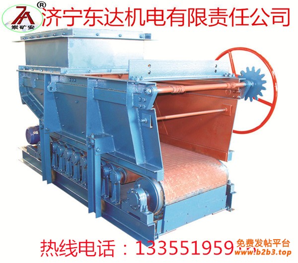 GLD系列甲带给料机(分为甲带给料机和皮带给料机,煤安证号MCN100003、MCN100004,外观见图示,皮带专利号:ZL200720159464.2,甲带专利号:ZL200920239962.7),甲带给料机广泛用于煤炭、冶金、电力等行业各种料仓的给料,为转动连续给料方式,生产中用户根据需要不停机就可进行调节(手动调节或液压缸调节),甲带给料机使给料系统更能满足高效、节能、环保的要求,比皮带给料机更耐用。